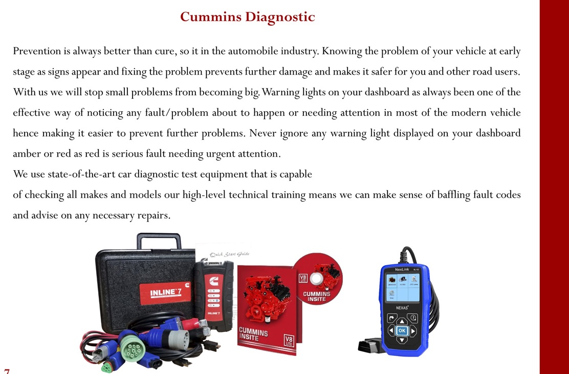 Prevention is always better than cure, so it in the automobile industry. Knowing the problem of your vehicle at early stage as signs appear and fixing the problem prevents further damage and makes it safer for you and other road users. With us we will stop small problems from becoming big.Warning lights on your dashboard as always been one of the effective way of noticing any fault/problem about to happen or needing attention in most of the modern vehicle hence making it easier to prevent further problems. Never ignore any warning light displayed on your dashboard amber or red as red is serious fault needing urgent attention. We use state-of-the-art car diagnostic test equipment that is capable of checking all makes and models our high-level technical training means we can make sense of baffling fault codes and advise on any necessary repairs.